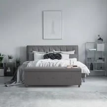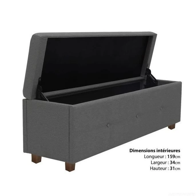 du produit Coffre de rangement en tissu simili cuir de longueur 160 cm, coloris gris clair