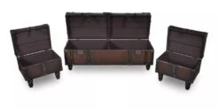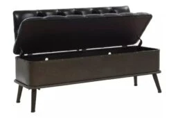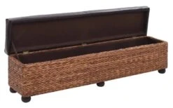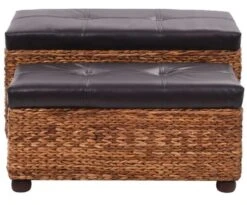 Banquette Coffre Capitonné Jacinthe D’eau Et Similicuir Noir Pieds Bois Massif Foncé Kiva – Lot De 2