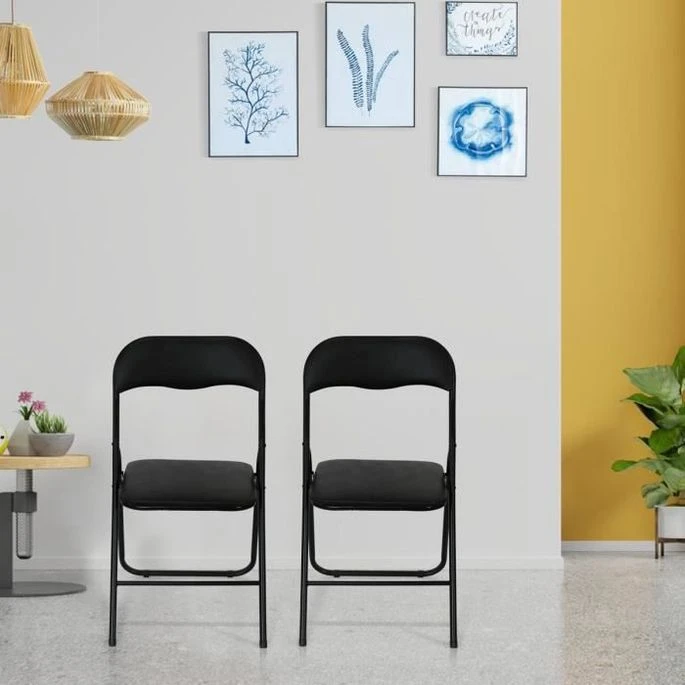 Lot De 2 Chaises Pliantes Noir – L 44 X P 47 X H 78 Cm – CLEA