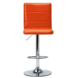 Chaise De Bar Simili Cuir Orange Et Métal Chromé Rand – Lot De 2